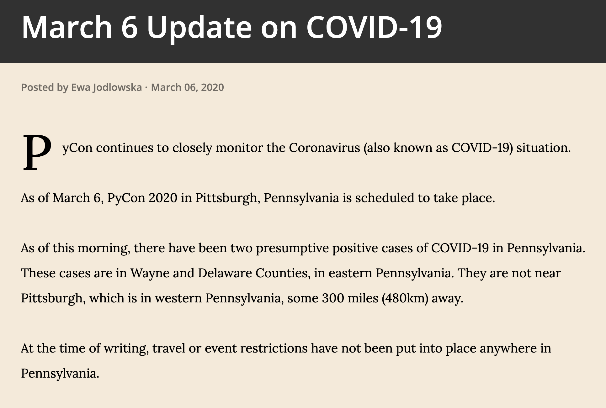 3月6日:COVID-19の状況を注視(4月15日に開催予定)[7]