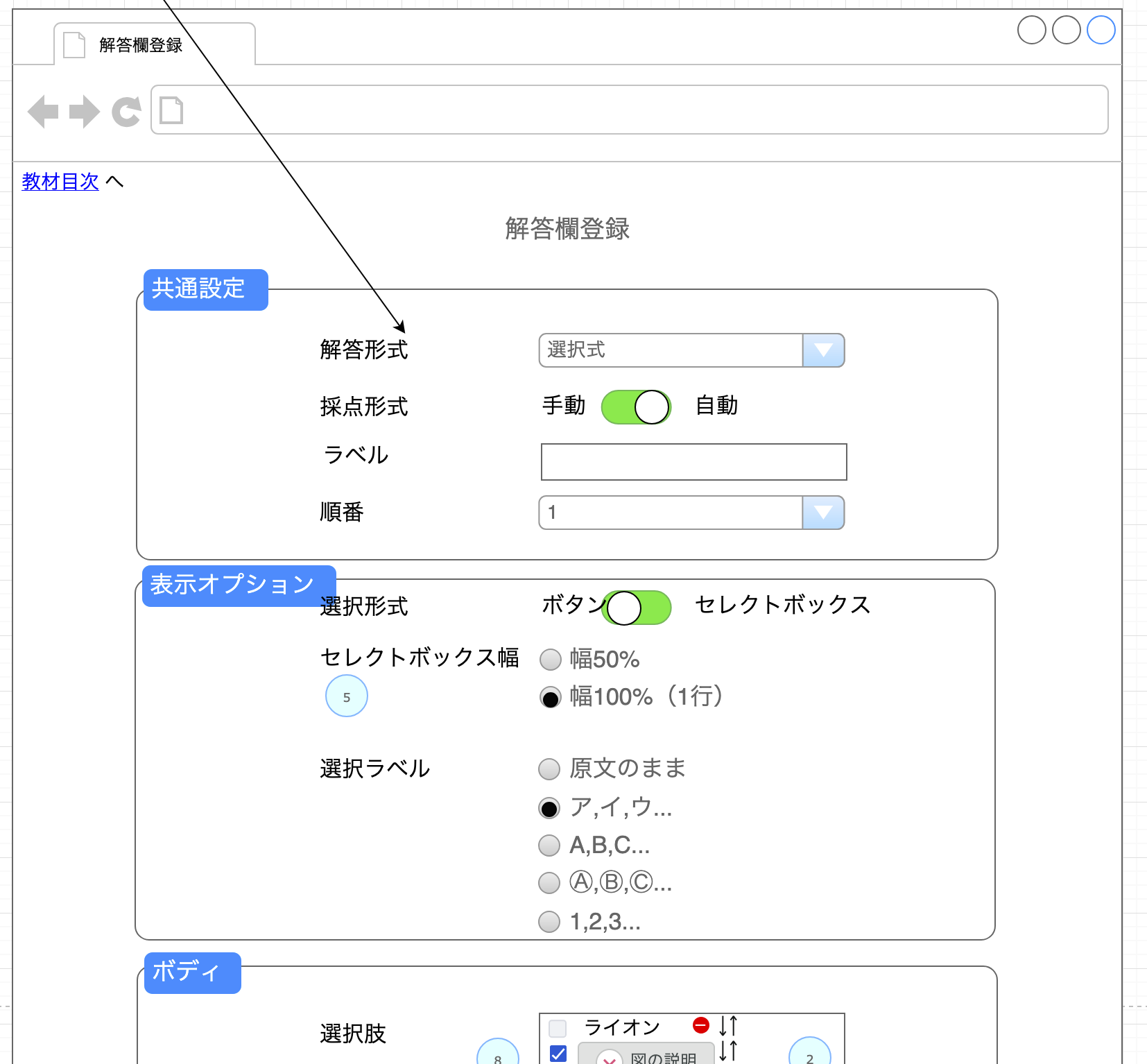 • 表示形式:ボタンorセレクトボックス、選択肢ラベル